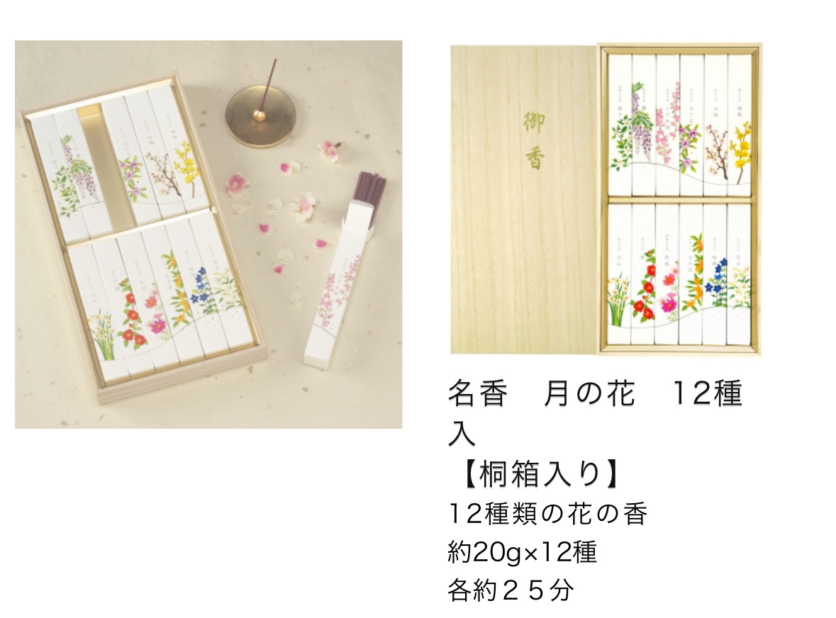 12カ月の花の香りがお線香でお楽しみいただけます。